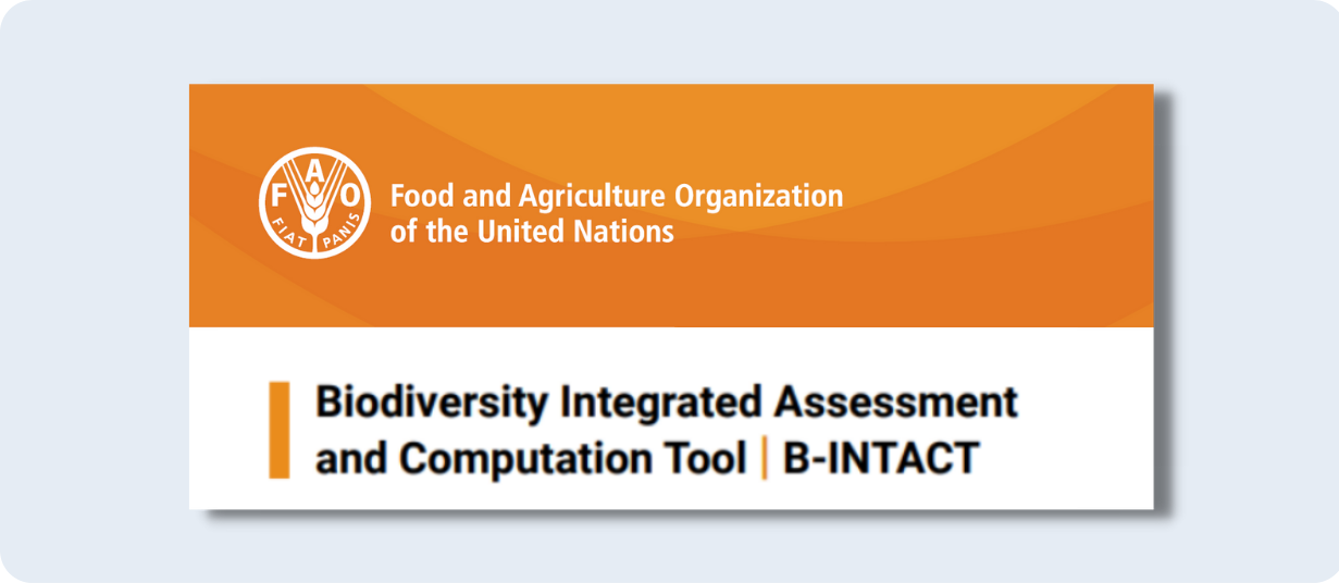 Le Biodiversity Integrated Assessment and Computation Tool (B-INTACT) élargit le champ des évaluations environnementales pour tenir compte des questions de biodiversité, qui ne sont pas prises en compte dans la tarification conventionnelle du carbone. L'outil est conçu pour des utilisateurs tels que les banques d'investissement nationales, les institutions financières internationales et les décideurs politiques, et permet une évaluation approfondie de la biodiversité des activités au niveau des projets dans le secteur de l'agriculture, de la sylviculture et de l'utilisation des terres (AFOLU).