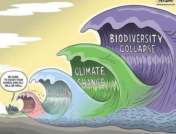 Dans sa première évaluation mondiale en 2019, la plateforme intergouvernementale scientifique et politique sur la biodiversité et les services écosystémiques (IPBES), qui est l’équivalent du groupe d'experts intergouvernemental sur l'évolution du climat (GIEC) pour la biodiversité, alerte sur la vitesse des changements induits par l’activité humaine dépassant nettement celle de la capacité d’adaptation des organismes vivants. Elle se traduit par un effondrement de la biodiversité à une vitesse dramatiquement plus élevée que le rythme normal d’extinction des espèces.